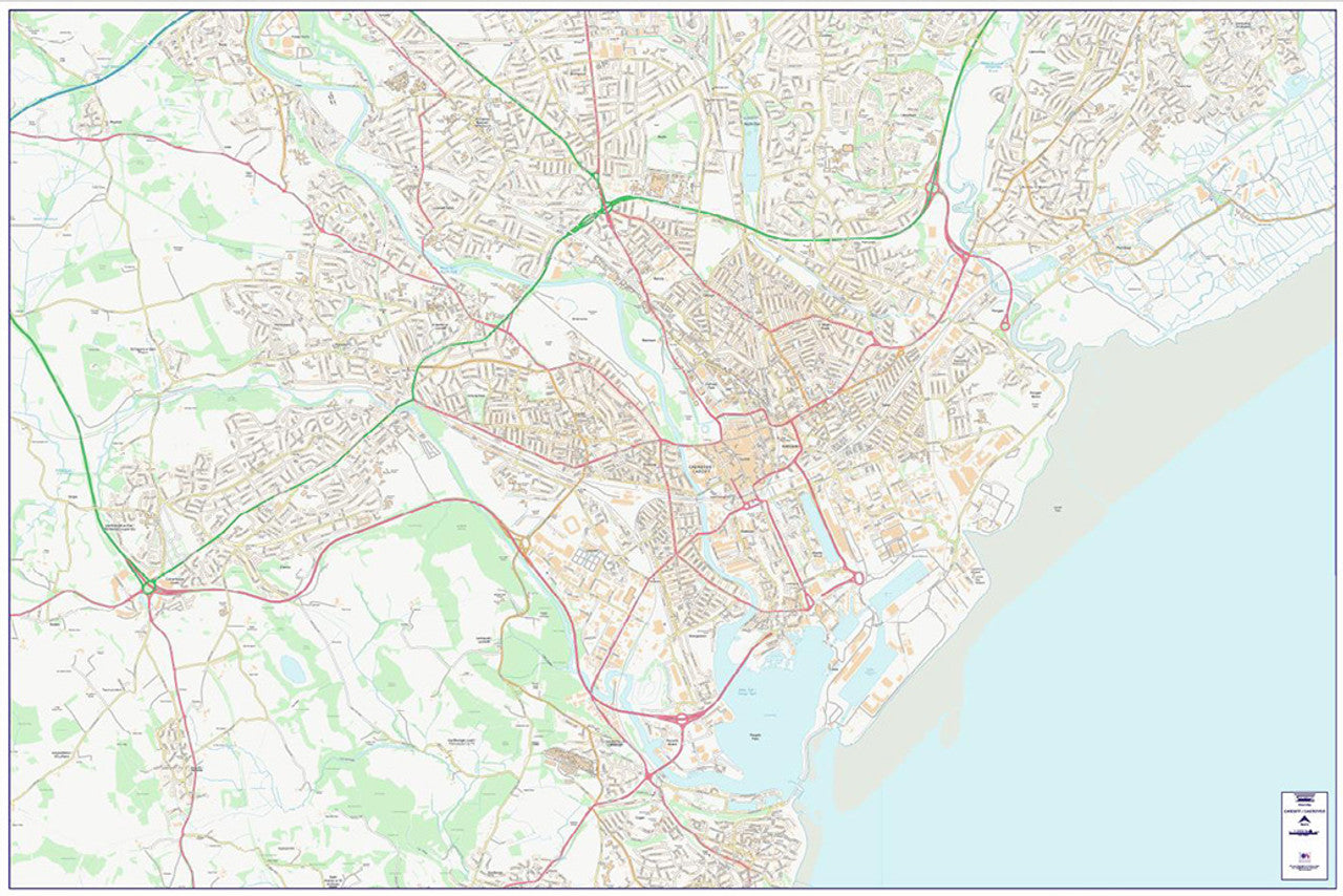 The City Street Map of Cardiff / Caerdydd from displays the city at 1:10000 scale. Utilising Ordnance Survey Street View mapping data means this map shows all the street names making this map ideal for businesses and organisations looking to target specific areas or streets in the city, while also being a great guide for tourists and students who are new to the city.
