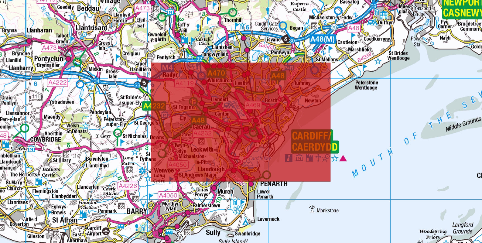 - 1:10000 scale OS Street mapping covering Central Cardiff