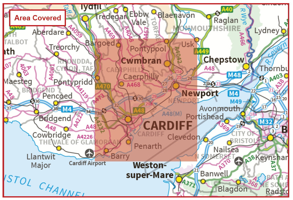 - 1:30000 scale district mapping centered on the Cities of Cardiff and Newport