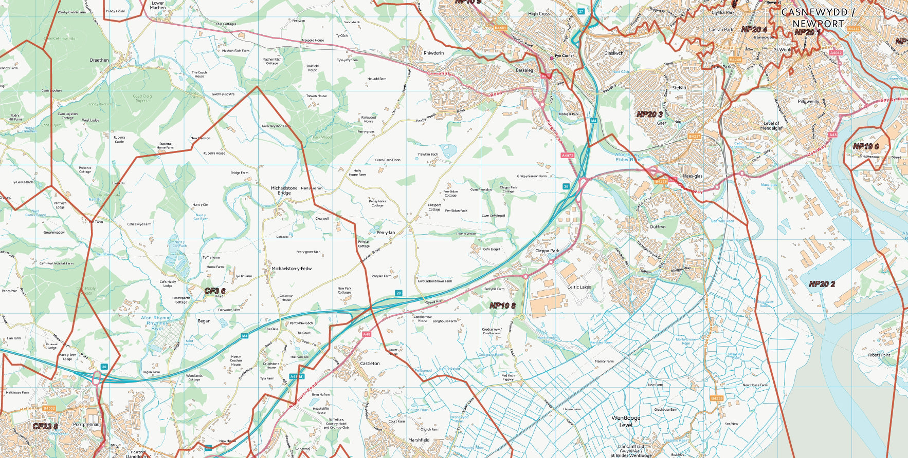 Postcode City Sector Map - Cardiff / Caerdydd and Newport / Casnewydd - Digital Download