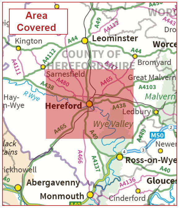 HR1 1, HR1 2, HR1 3, HR1 4, HR1 9, HR2 0, HR2 6, HR2 7, HR2 8, HR2 9, HR3 6, HR4 0, HR4 7, HR4 8, HR4 9, HR7 4, HR8 2, HR9 7