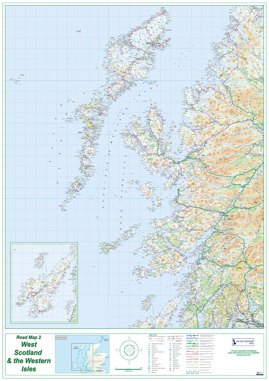 This digital download for Road Map 2 covers Western Scotland and the Western Isles using Ordnance Survey mapping data at 1:250,000 scale to provide a clear and easy to use Road Map. Ideal for everything from office planning to traveling in the Western Scotland and the Western Isles.