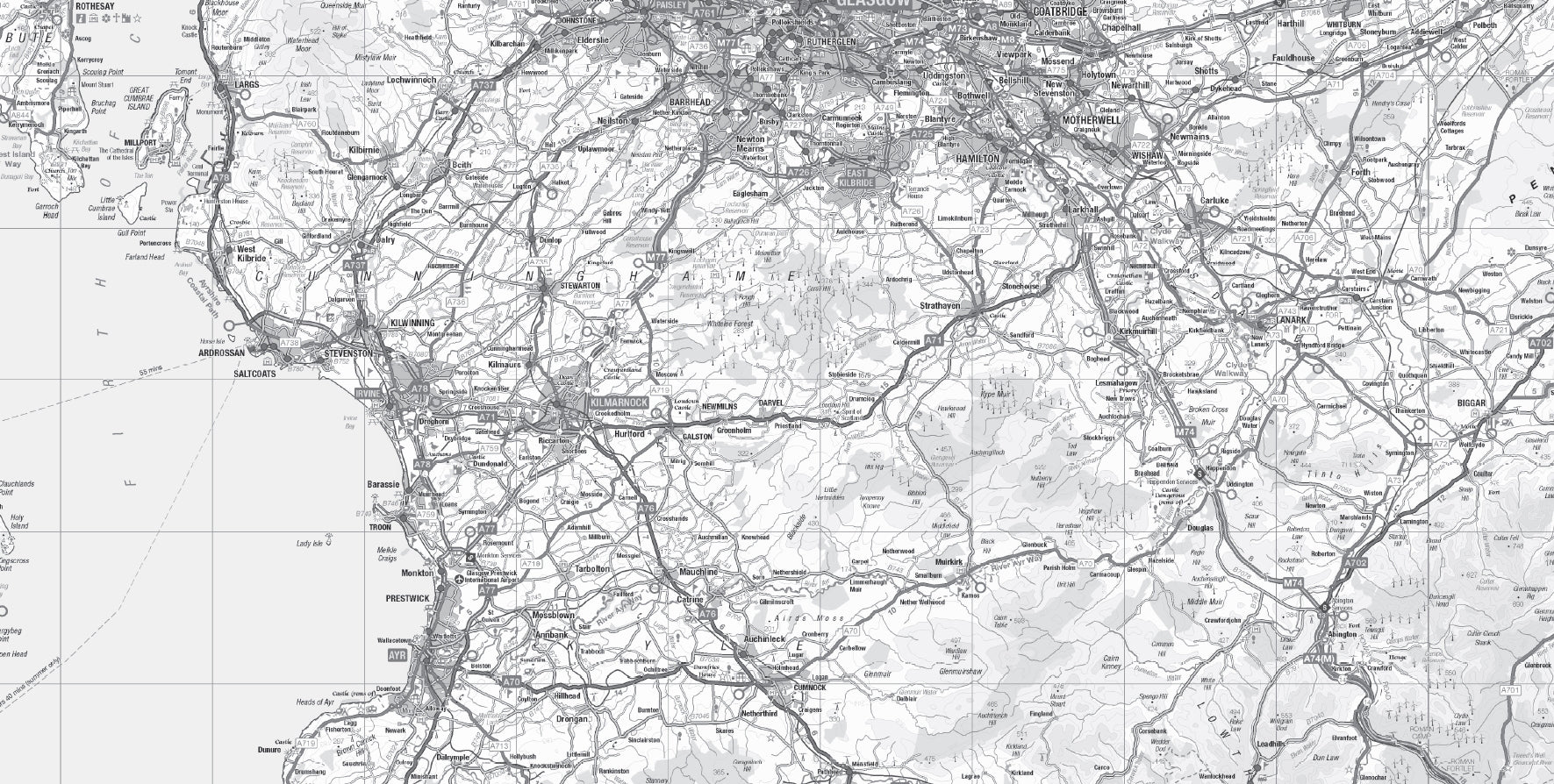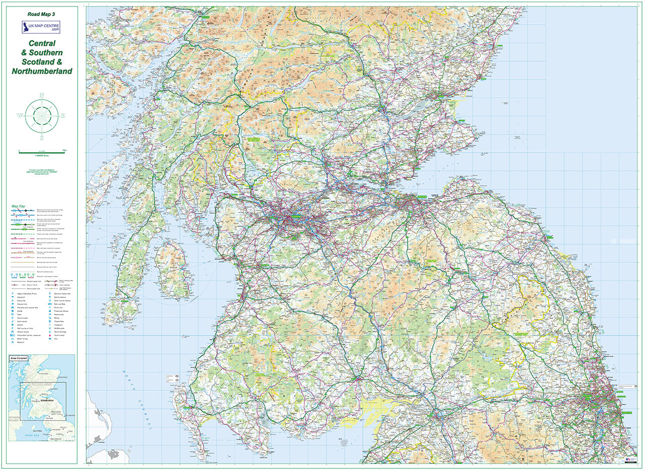 - 1:250 000 scale road map covering Central & South of Scotland and the North of England